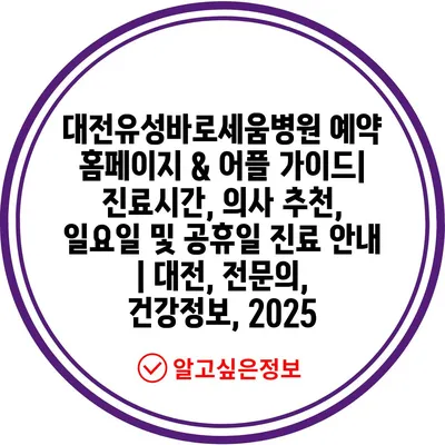 대전유성바로세움병원 예약 홈페이지 & 어플 가이드| 진료시간, 의사 추천, 일요일 및 공휴일 진료 안내 | 대전, 전문의, 건강정보, 2025