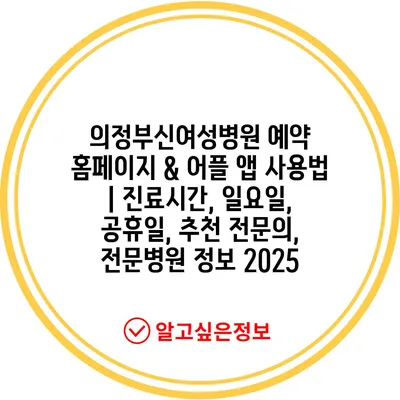 의정부신여성병원 예약 홈페이지 & 어플 앱 사용법 | 진료시간, 일요일, 공휴일, 추천 전문의, 전문병원 정보 2025