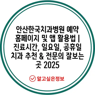 안산한국치과병원 예약 홈페이지 및 앱 활용법 | 진료시간, 일요일, 공휴일 치과 추천 & 전문의 잘보는 곳 2025