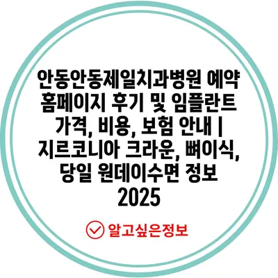 안동안동제일치과병원 예약 홈페이지 후기 및 임플란트 가격, 비용, 보험 안내 | 지르코니아 크라운, 뼈이식, 당일 원데이수면 정보 2025