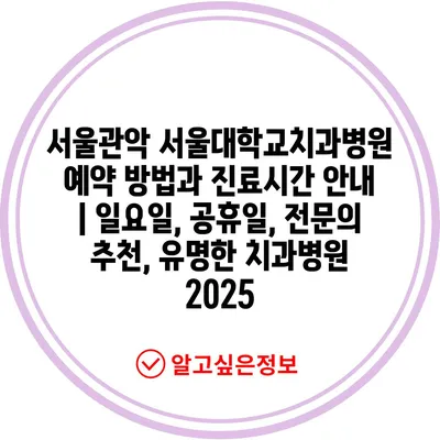 서울관악 서울대학교치과병원 예약 방법과 진료시간 안내 | 일요일, 공휴일, 전문의 추천, 유명한 치과병원 2025