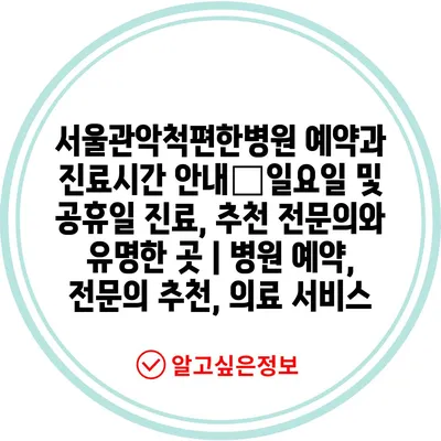 서울관악척편한병원 예약과 진료시간 안내—일요일 및 공휴일 진료, 추천 전문의와 유명한 곳 | 병원 예약, 전문의 추천, 의료 서비스
