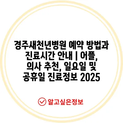 경주새천년병원 예약 방법과 진료시간 안내 | 어플, 의사 추천, 일요일 및 공휴일 진료정보 2025