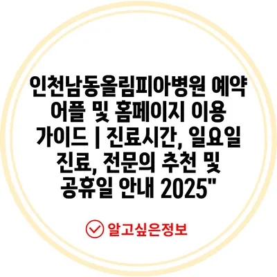 인천남동올림피아병원 예약 어플 및 홈페이지 이용 가이드 | 진료시간, 일요일 진료, 전문의 추천 및 공휴일 안내 2025″