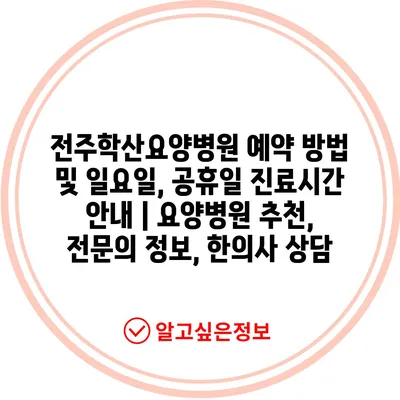 전주학산요양병원 예약 방법 및 일요일, 공휴일 진료시간 안내 | 요양병원 추천, 전문의 정보, 한의사 상담