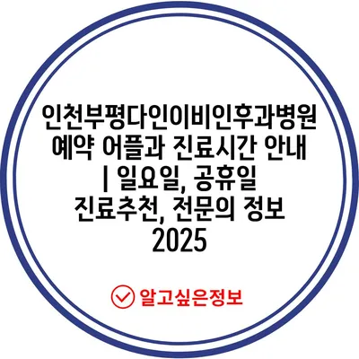 인천부평다인이비인후과병원 예약 어플과 진료시간 안내 | 일요일, 공휴일 진료추천, 전문의 정보 2025