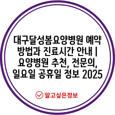 대구달성봄요양병원 예약 방법과 진료시간 안내 | 요양병원 추천, 전문의, 일요일 공휴일 정보 2025