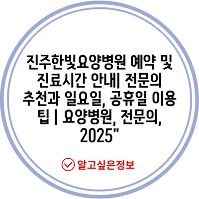 진주한빛요양병원 예약 및 진료시간 안내| 전문의 추천과 일요일, 공휴일 이용 팁 | 요양병원, 전문의, 2025″