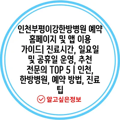 인천부평이강한방병원 예약 홈페이지 및 앱 이용 가이드| 진료시간, 일요일 및 공휴일 운영, 추천 전문의 TOP 5 | 인천, 한방병원, 예약 방법, 진료 팁