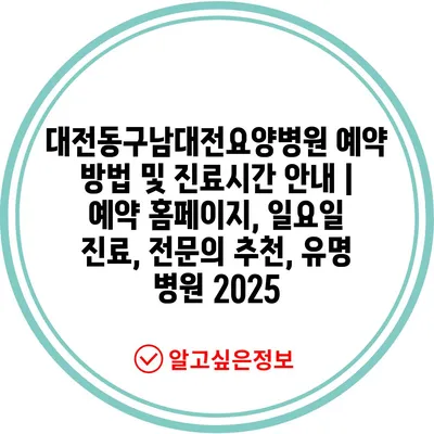 대전동구남대전요양병원 예약 방법 및 진료시간 안내 | 예약 홈페이지, 일요일 진료, 전문의 추천, 유명 병원 2025