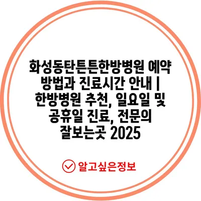 화성동탄튼튼한방병원 예약 방법과 진료시간 안내 | 한방병원 추천, 일요일 및 공휴일 진료, 전문의 잘보는곳 2025