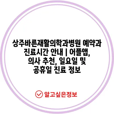 상주바른재활의학과병원 예약과 진료시간 안내 | 어플앱, 의사 추천, 일요일 및 공휴일 진료 정보