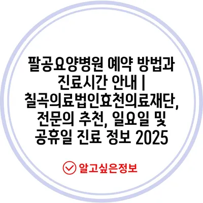 팔공요양병원 예약 방법과 진료시간 안내 | 칠곡의료법인효천의료재단, 전문의 추천, 일요일 및 공휴일 진료 정보 2025