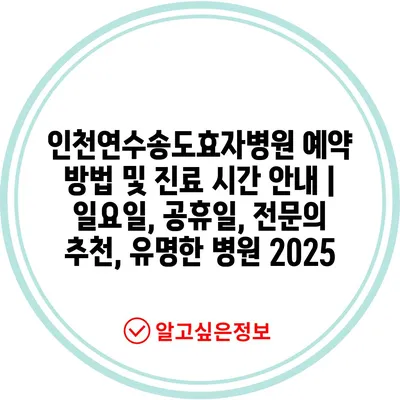 인천연수송도효자병원 예약 방법 및 진료 시간 안내 | 일요일, 공휴일, 전문의 추천, 유명한 병원 2025