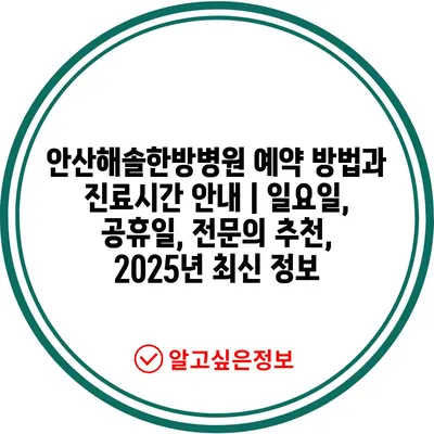 안산해솔한방병원 예약 방법과 진료시간 안내 | 일요일, 공휴일, 전문의 추천, 2025년 최신 정보
