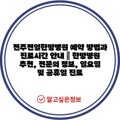 전주전일한방병원 예약 방법과 진료시간 안내 | 한방병원 추천, 전문의 정보, 일요일 및 공휴일 진료
