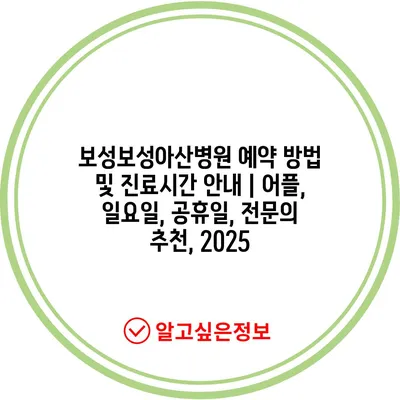 보성보성아산병원 예약 방법 및 진료시간 안내 | 어플, 일요일, 공휴일, 전문의 추천, 2025