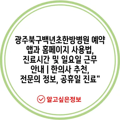 광주북구백년초한방병원 예약 앱과 홈페이지 사용법, 진료시간 및 일요일 근무 안내 | 한의사 추천, 전문의 정보, 공휴일 진료”