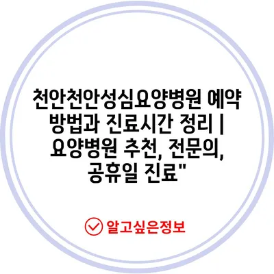 천안천안성심요양병원 예약 방법과 진료시간 정리 | 요양병원 추천, 전문의, 공휴일 진료”