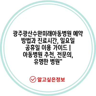 광주광산수완미래아동병원 예약 방법과 진료시간, 일요일 공휴일 이용 가이드 | 아동병원 추천, 전문의, 유명한 병원”