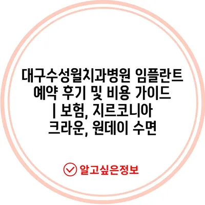 대구수성윌치과병원 임플란트 예약 후기 및 비용 가이드 | 보험, 지르코니아 크라운, 원데이 수면