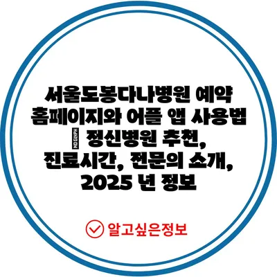 서울도봉다나병원 예약 홈페이지와 어플 앱 사용법 | 정신병원 추천, 진료시간, 전문의 소개, 2025 년 정보