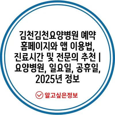 김천김천요양병원 예약 홈페이지와 앱 이용법, 진료시간 및 전문의 추천 | 요양병원, 일요일, 공휴일, 2025년 정보