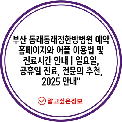 부산 동래동래정한방병원 예약 홈페이지와 어플 이용법 및 진료시간 안내 | 일요일, 공휴일 진료, 전문의 추천, 2025 안내”
