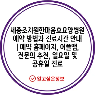세종조치원한마음효요양병원 예약 방법과 진료시간 안내 | 예약 홈페이지, 어플앱, 전문의 추천, 일요일 및 공휴일 진료