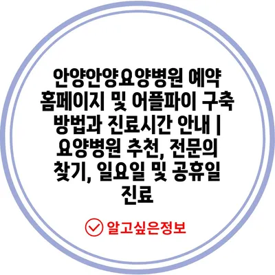 안양안양요양병원 예약 홈페이지 및 어플파이 구축 방법과 진료시간 안내 | 요양병원 추천, 전문의 찾기, 일요일 및 공휴일 진료