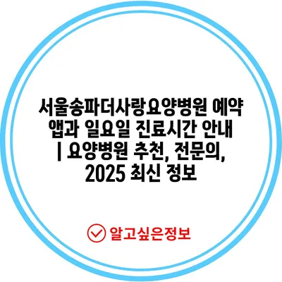 서울송파더사랑요양병원 예약 앱과 일요일 진료시간 안내 | 요양병원 추천, 전문의, 2025 최신 정보