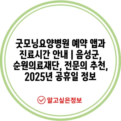 굿모닝요양병원 예약 앱과 진료시간 안내 | 음성군, 순원의료재단, 전문의 추천, 2025년 공휴일 정보