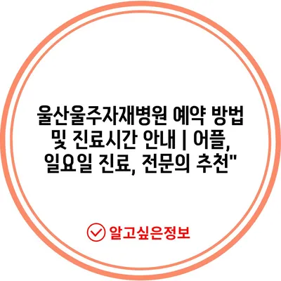 울산울주자재병원 예약 방법 및 진료시간 안내 | 어플, 일요일 진료, 전문의 추천”
