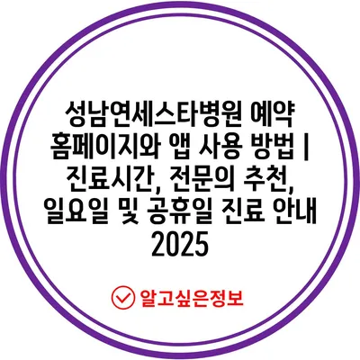 성남연세스타병원 예약 홈페이지와 앱 사용 방법 | 진료시간, 전문의 추천, 일요일 및 공휴일 진료 안내 2025