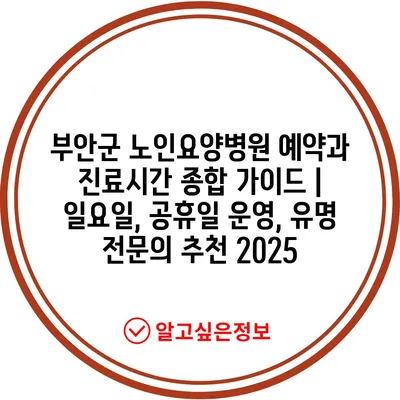 부안군 노인요양병원 예약과 진료시간 종합 가이드 | 일요일, 공휴일 운영, 유명 전문의 추천 2025