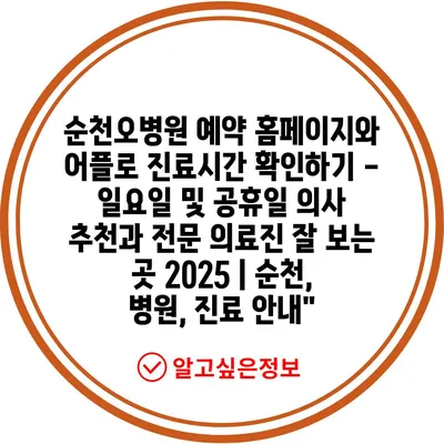 순천오병원 예약 홈페이지와 어플로 진료시간 확인하기 – 일요일 및 공휴일 의사 추천과 전문 의료진 잘 보는 곳 2025 | 순천, 병원, 진료 안내”