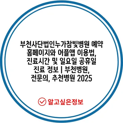 부천사단법인누가참빛병원 예약 홈페이지와 어플앱 이용법, 진료시간 및 일요일 공휴일 진료 정보 | 부천병원, 전문의, 추천병원 2025