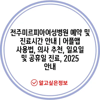 전주미르피아여성병원 예약 및 진료시간 안내 | 어플앱 사용법, 의사 추천, 일요일 및 공휴일 진료, 2025 안내