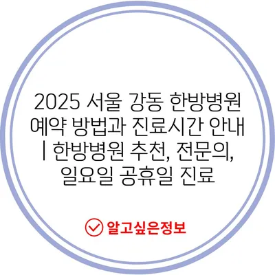 2025 서울 강동 한방병원 예약 방법과 진료시간 안내 | 한방병원 추천, 전문의, 일요일 공휴일 진료