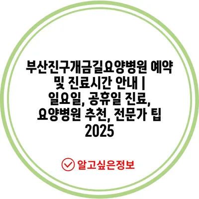 부산진구개금길요양병원 예약 및 진료시간 안내 | 일요일, 공휴일 진료, 요양병원 추천, 전문가 팁 2025