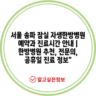 서울 송파 잠실 자생한방병원 예약과 진료시간 안내 | 한방병원 추천, 전문의, 공휴일 진료 정보”