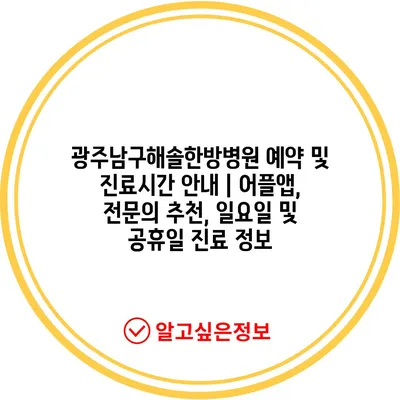 광주남구해솔한방병원 예약 및 진료시간 안내 | 어플앱, 전문의 추천, 일요일 및 공휴일 진료 정보