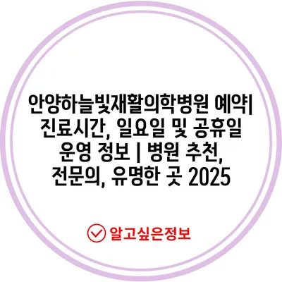 안양하늘빛재활의학병원 예약| 진료시간, 일요일 및 공휴일 운영 정보 | 병원 추천, 전문의, 유명한 곳 2025