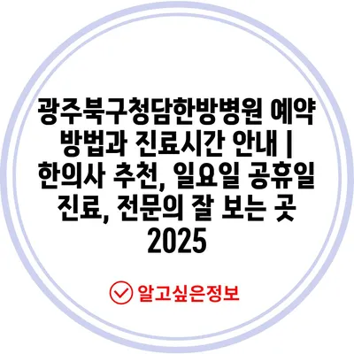 광주북구청담한방병원 예약 방법과 진료시간 안내 | 한의사 추천, 일요일 공휴일 진료, 전문의 잘 보는 곳 2025
