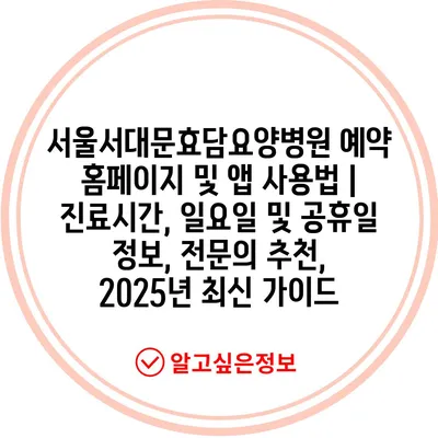 서울서대문효담요양병원 예약 홈페이지 및 앱 사용법 | 진료시간, 일요일 및 공휴일 정보, 전문의 추천, 2025년 최신 가이드