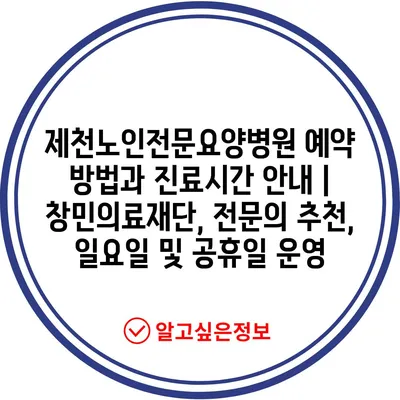 제천노인전문요양병원 예약 방법과 진료시간 안내 | 창민의료재단, 전문의 추천, 일요일 및 공휴일 운영