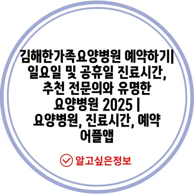 김해한가족요양병원 예약하기| 일요일 및 공휴일 진료시간, 추천 전문의와 유명한 요양병원 2025 | 요양병원, 진료시간, 예약 어플앱