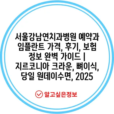 서울강남연치과병원 예약과 임플란트 가격, 후기, 보험 정보 완벽 가이드 | 지르코니아 크라운, 뼈이식, 당일 원데이수면, 2025