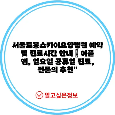 서울도봉스카이요양병원 예약 및 진료시간 안내 | 어플 앱, 일요일 공휴일 진료, 전문의 추천”