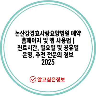 논산강경효사랑요양병원 예약 홈페이지 및 앱 사용법 | 진료시간, 일요일 및 공휴일 운영, 추천 전문의 정보 2025